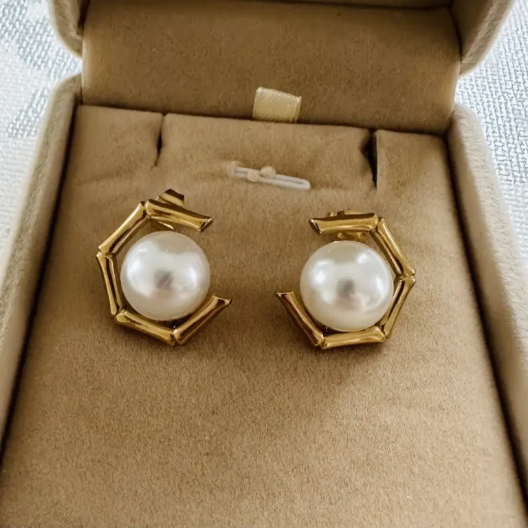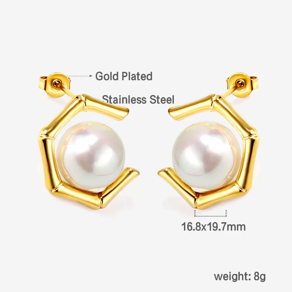 They are crafted from high-quality stainless steel, plated in 18K gold or rose gold, and finished with white pearls for a blend of luxury and durability.